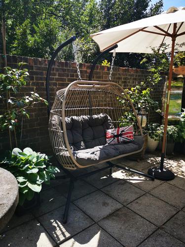 This hanging egg chair is made of rattan with a durable steel frame. The powder-coated steel frame and wicker exterior combine to offer an incredibly comfortable outdoor seating option. It oozes class and attention to detail even the black powder-coated stand and chain will ensure it will last for years.